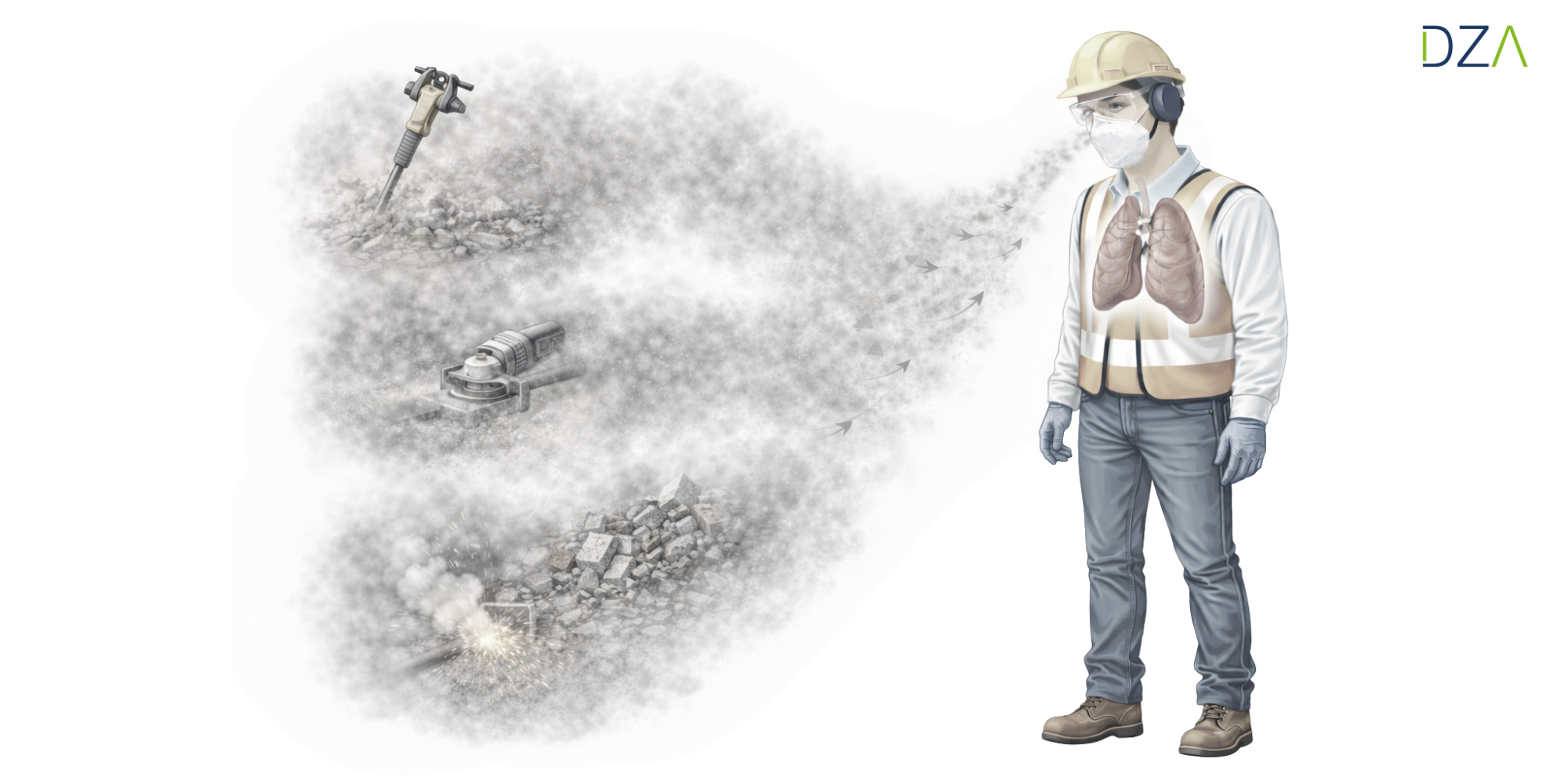 Mineral dust is produced, for example, when working with stone, concrete, cement, quartz, metal, or during the demolition and grinding of building materials.