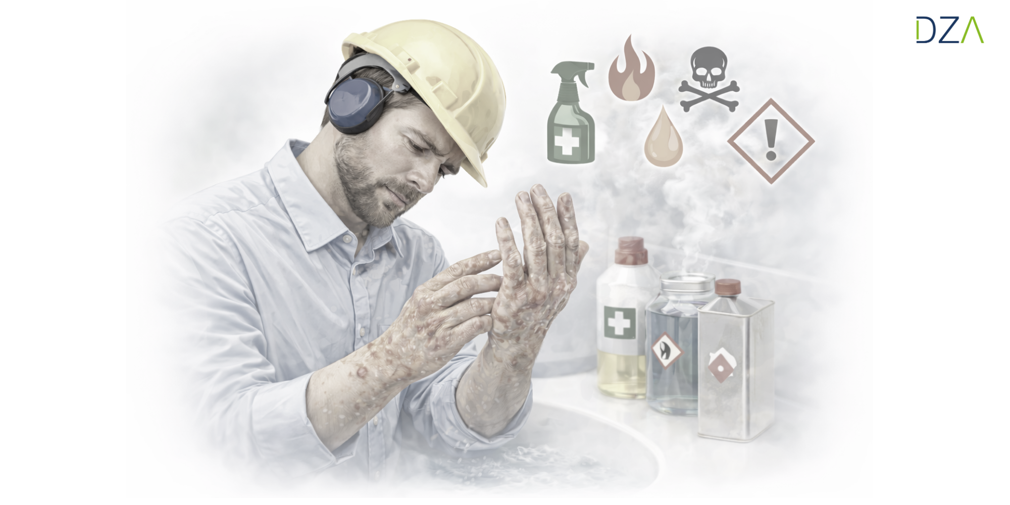 Many chemicals, such as disinfectants, cleaning agents, oils, or solvents, can attack the skin. They can damage the natural protective layer and cause skin irritation, dryness, or allergies.