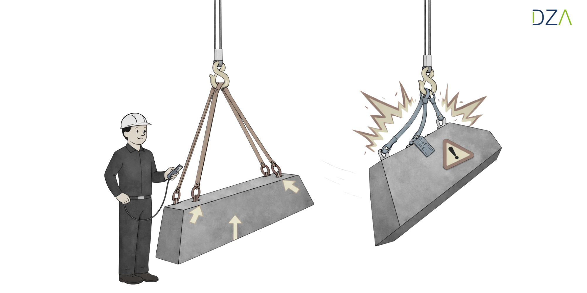 Für Sie bedeutet das: Sie heben Lasten immer langsam und kontrolliert an, vermeiden ruckartige Bewegungen und achten darauf, dass das Anschlagmittel nicht plötzlich auf Spannung gebracht wird. Schockbelastungen gehören zu den häufigsten Ursachen für Materialversagen.