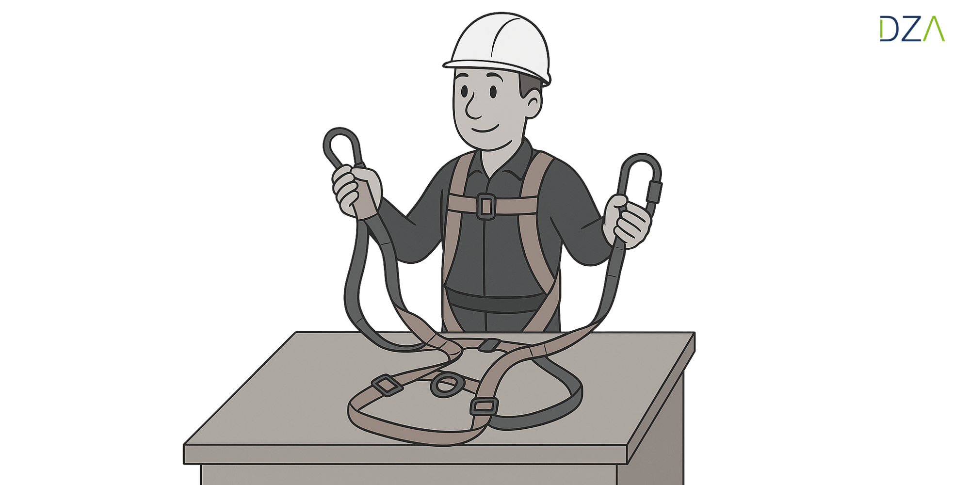 Erst wenn alles fest sitzt und nicht verrutscht, kann das Verbindungsmittel sicher angeschlagen werden. Nehmen Sie sich für das Anlegen Zeit und kontrollieren Sie jeden Verschluss, bevor Sie die Arbeit aufnehmen.