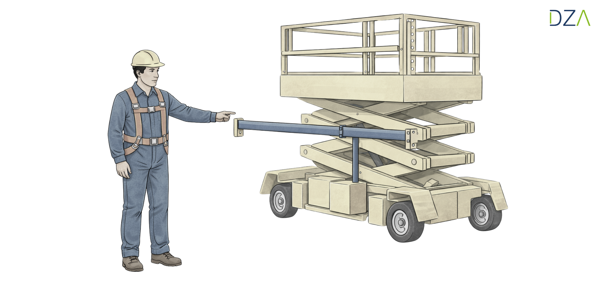 Um Quetsch- oder Scherverletzungen an Scherenhubarbeitsbühnen zu verhindern, stehen verschiedene Schutzmaßnahmen zur Verfügung. An erster Stelle steht die Einhaltung ausreichender Mindestabstände, damit keine unbeteiligte Person versehentlich in die Scherenmechanik greifen kann. Diese Bereiche werden in der Regel durch trennende Schutzeinrichtungen gesichert – etwa durch seitliche Abstandshalter, die das Durch- oder Eingreifen zuverlässig verhindern.
