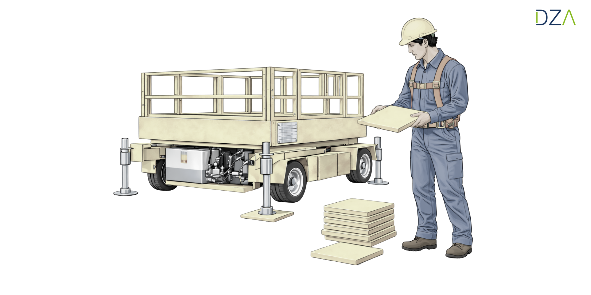 Prüfen Sie daher immer, ob der Boden für das Abstützen freigegeben ist. Wenn Sie diese Grundregeln beachten, steht einer sicheren und stabilen Aufstellung Ihrer Arbeitsbühne nichts im Weg.