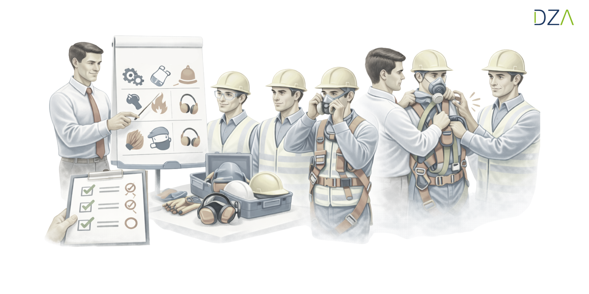 In der Unterweisung werden typische Gefährdungen erläutert und erklärt, warum die jeweilige PSA notwendig ist. Außerdem werden praktische Übungen durchgeführt, in denen Beschäftigte die Ausrüstung selbst ausprobieren können. Dies ist besonders wichtig bei komplexer PSA wie Atemschutzgeräten oder Auffanggurten, deren korrekte Anwendung lebenswichtig sein kann.