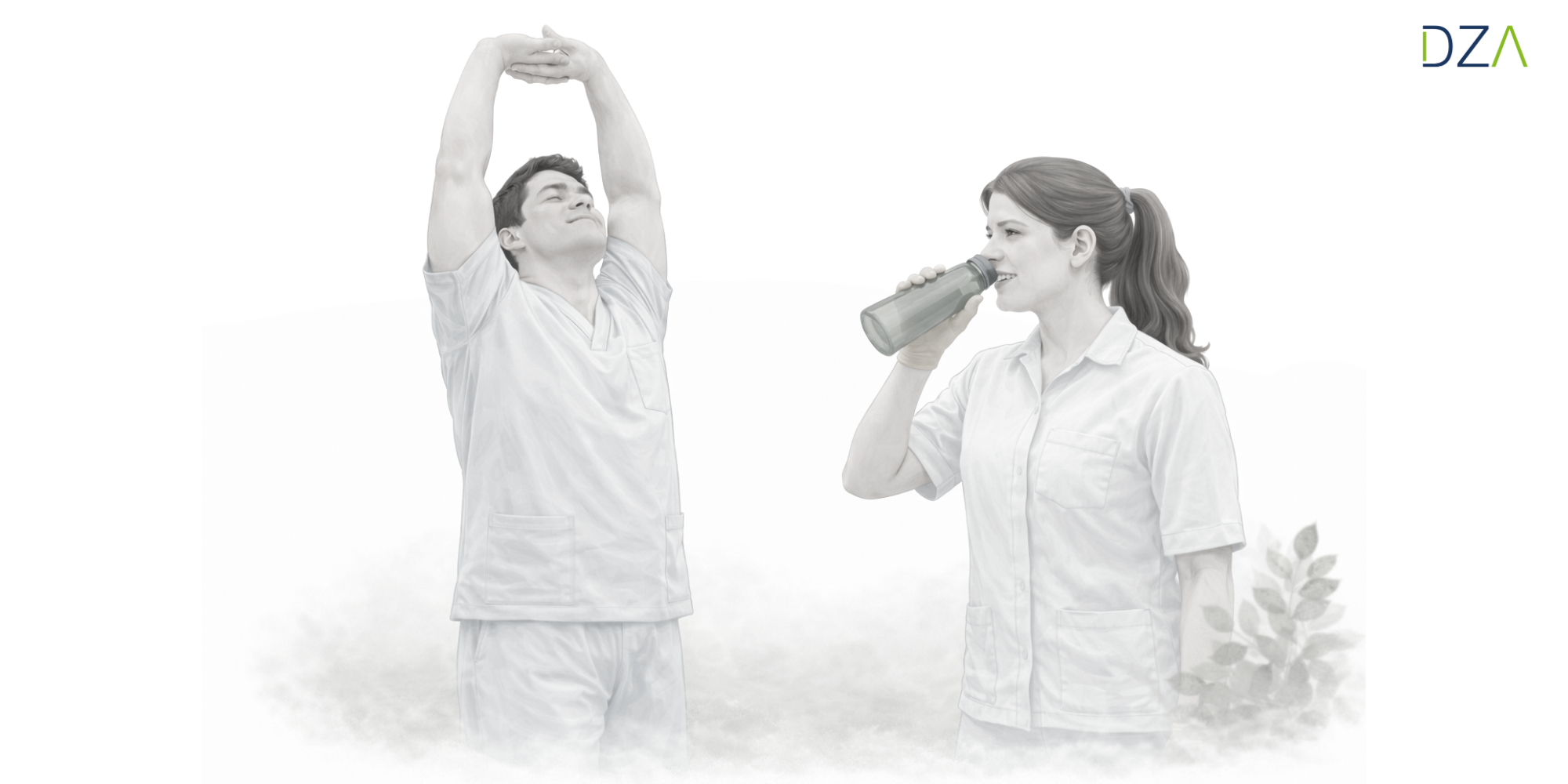 Pausen sind ein notwendiger Bestandteil der Arbeitsorganisation, denn nur ein erholter Körper arbeitet sicher und konzentriert. Nutzen Sie Pausen nicht nur zum Sitzen, sondern für kurze Bewegungs- oder Dehnübungen, frische Luft oder einen kleinen Spaziergang.