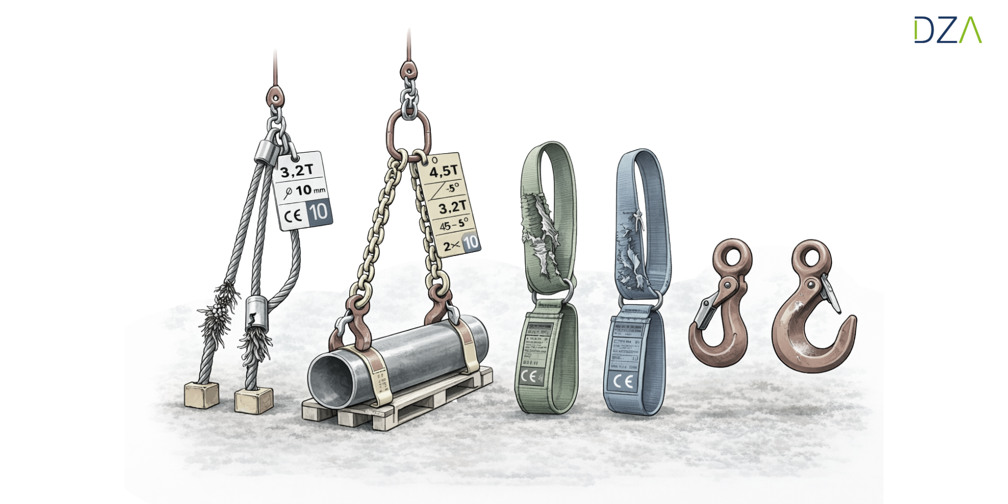 Kettenanhänger liefern Ihnen alle sicherheitsrelevanten Informationen, die Sie für den sicheren Einsatz eines Anschlagmittels benötigen. Dazu gehören Tragfähigkeit, Kettendurchmesser, zulässige Neigungswinkel, die Anzahl der Kettenstränge sowie die jeweilige Güteklasse. Bei einer Einstrangkette finden Sie beispielsweise Angaben wie 3200 kg Tragfähigkeit, einen Kettendurchmesser von 10 mm und den zulässigen Belastungswinkel. Zweistrangketten enthalten zusätzlich Tragfähigkeitswerte für unterschiedliche Neigungswinkel, etwa 4500 kg bei 45 Grad oder 3200 kg bei 45 bis 60 Grad. Sondergüteketten der Güteklasse 10 verfügen über erweiterte Angaben wie die genaue Stranganzahl und die Tragfähigkeit in Tonnen.