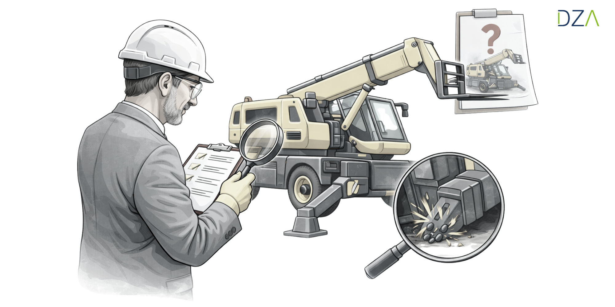 Ein Sachverständiger wird hinzugezogen, wenn ein Teleskopstapler erstmals in Betrieb genommen wird oder wenn ein Schadenfall vorliegt. Er überprüft die Maschine besonders gründlich und beurteilt, ob sie sicher und ordnungsgemäß montiert wurde.