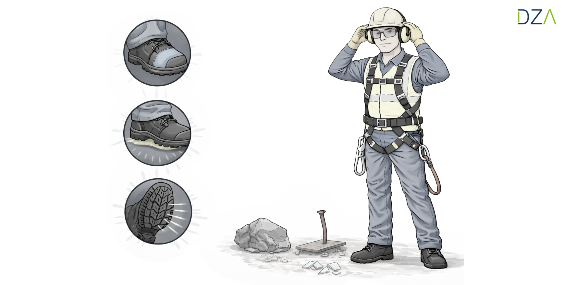 Sie schützen Sie vor schweren Gegenständen, die auf Ihre Füße fallen könnten, und helfen, Verletzungen durch Nägel, Scherben oder scharfe Kanten im Boden zu vermeiden. Sicherheitsschuhe müssen immer gut passen, geschlossen getragen werden und regelmäßig auf Schäden kontrolliert werden.