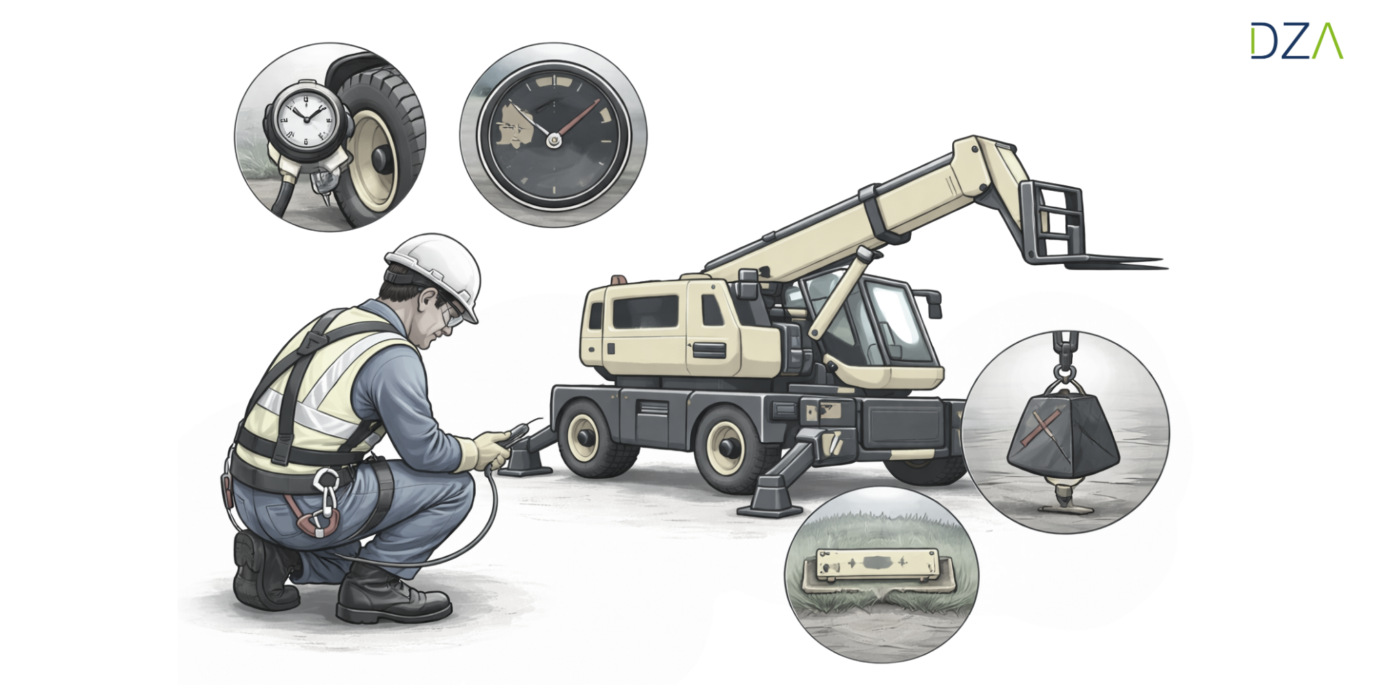 Diese Werte bestimmen, ob zusätzliche Abstützungen oder Lastverteilerplatten erforderlich sind. Geländeneigung, Böschungen, Gräben sowie unsichere Bereiche wie Schachtabdeckungen erhöhen das Kipprisiko und müssen unbedingt berücksichtigt werden.